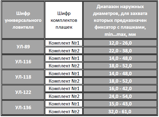 Ловитель универсальный типа УЛ предназначен для захвата за наружную цилиндрическую поверхность и последующего извлечения элементов трубных колонн, преимущественно насосных штанг, при проведении ремонтных и аварийно-восстановительных работ в скважинах.