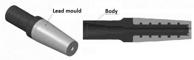 The impression block consists of a body, molded with lead in the form of a cone.